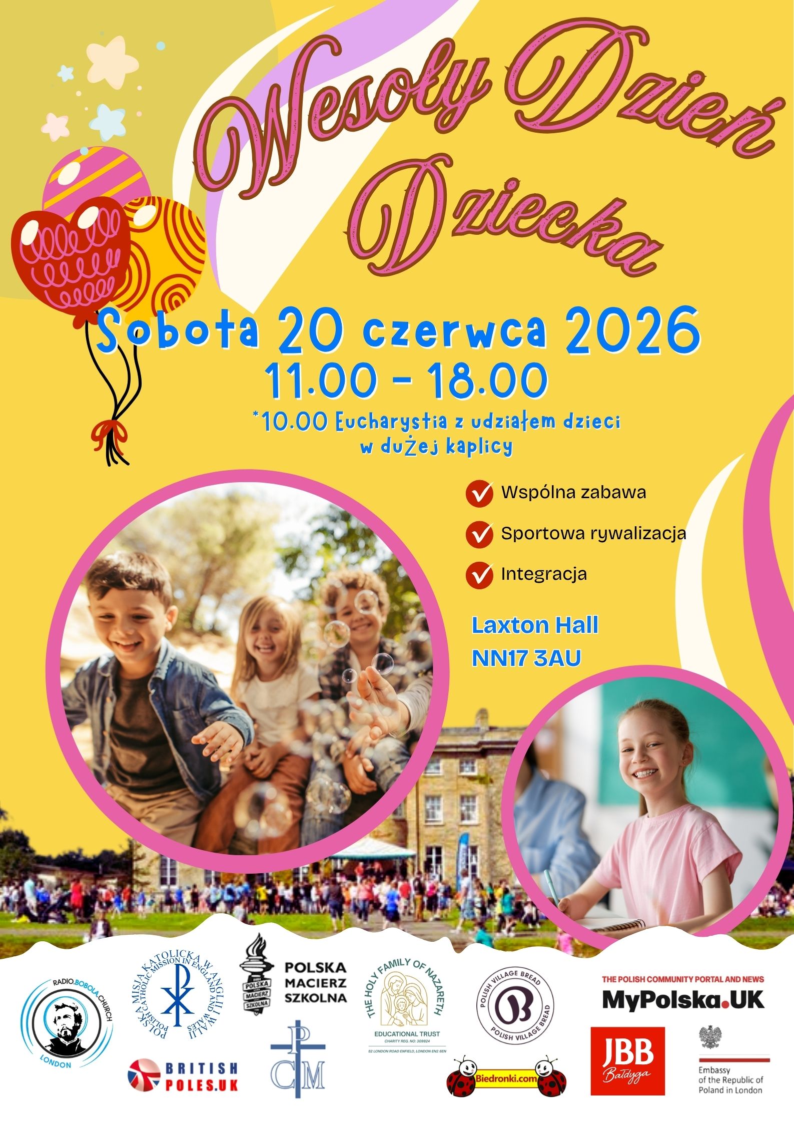 W sobotę, 20 czerwca, Polska Misja Katolicka w Anglii i Walii wraz z Polska Macierz Szkolna serdecznie zapraszają na Wesoły Dzień Dziecka w Laxton Hall – wyjątkowe rodzinne święto, które co roku przyciąga tysiące Polaków.